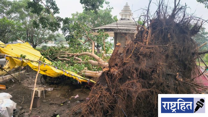 वादळी पावसाचा कहर : पवनारमध्ये पिंपळाचे मोठे झाड कोसळले, चिवड्याच्या दुकानाचे मोठे नुकसान