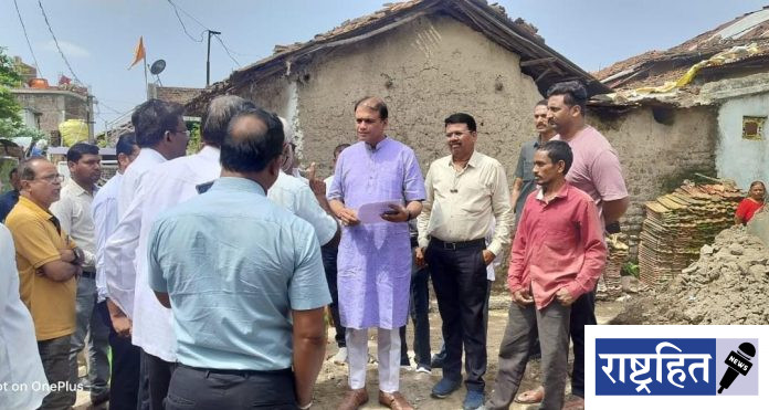 पवनार : आठ व नऊ जुलै रोजी पवनार परिसरात झालेल्या अतिवृष्टीमुळे अनेकांच्या घरांना व मालमत्तेला मोठ्या प्रमाणात बाधा पोहोचली आहे. बाधित घरांना शासकीय निकषानुसार योग्य ती भरपाई मिळवून देण्यासाठी स्वतः पुढाकार घेऊन प्रयत्न करणार असल्याचे आश्वासन महाराष्ट्र राज्याचे राज्यमंत्री पंकज भोयर यांनी दिले. राज्यमंत्री भोयर हे आज सकाळी वर्धा येथे नियोजित दौऱ्यावर जात असताना पवनार येथे थांबले. त्यांनी यावेळी ज्ञानेश्वर येरुणकर यांच्या पावसामुळे बाधित घराची पाहणी केली व कुटुंबियांशी संवाद साधून त्यांच्या अडचणी जाणून घेतल्या.