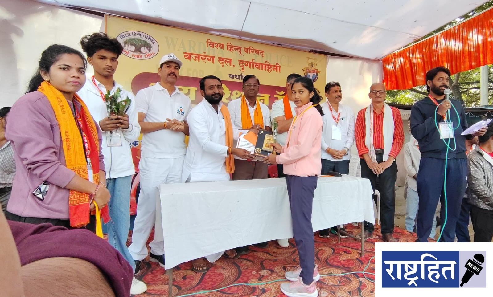 या प्रसंगी म.भ.प. मयूर महाराज, विश्व हिंदू परिषदेचे जिल्हाध्यक्ष सुभाषजी राठी, स्वावलंब भारतचे अटलजी पांडे, विहिपचे जिल्हा मंत्री अनिलजी कावळे, बजरंग दलाचे जिल्हा संयोजक महेश राऊत, जिल्हा प्रभारी मुन्ना यादव, विद्यार्थी प्रमुख अंबुज पांडे, सहसंयोजक अमोल अतकर, नगर संयोजक किरण उपाध्याय, विहिपचे उपाध्यक्ष संजय बडगेवार, सहमंत्री अरविंद कोकाटे, दुर्गा वाहिनीच्या जिल्हा संयोजक पुनम भोयर, नगर संयोजक अॅड. स्वाती दोडके व नगर विद्यार्थी प्रमुख राहुल शुक्ला यांची प्रमुख उपस्थिती होती.