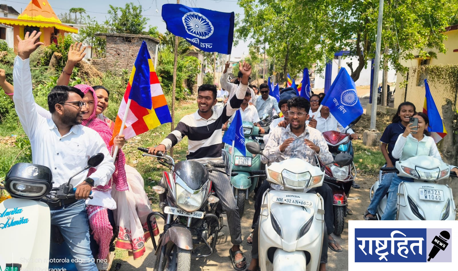रॅलीमध्ये युवकांनी मोठ्या संख्येने सहभाग घेतला होता. निळ्या झेंड्यांनी सजवलेल्या दुचाकींसह “जय भीम”च्या घोषणांनी संपूर्ण परिसर दुमदुमून गेला. रॅली अण्णा भाऊ साठे नगर, बस स्थानक चौक, ग्रामपंचायत चौक, बाजार चौक मार्गे संपूर्ण गावातून मार्गक्रमण करत पार पडली.